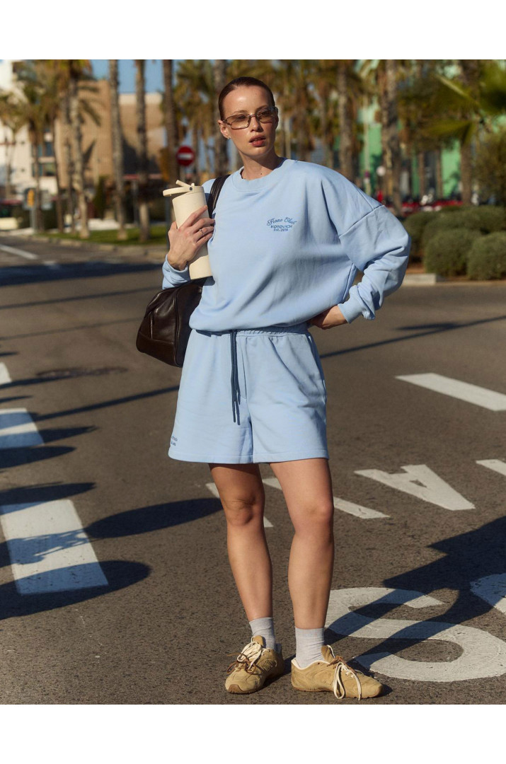 Світшот вільного крою, з вишивкою темно-синього кольору "Home Club". Матеріал: трьохнитка, у складі 100% бавовна. Колір: блакитнийРозмір onesize:..
